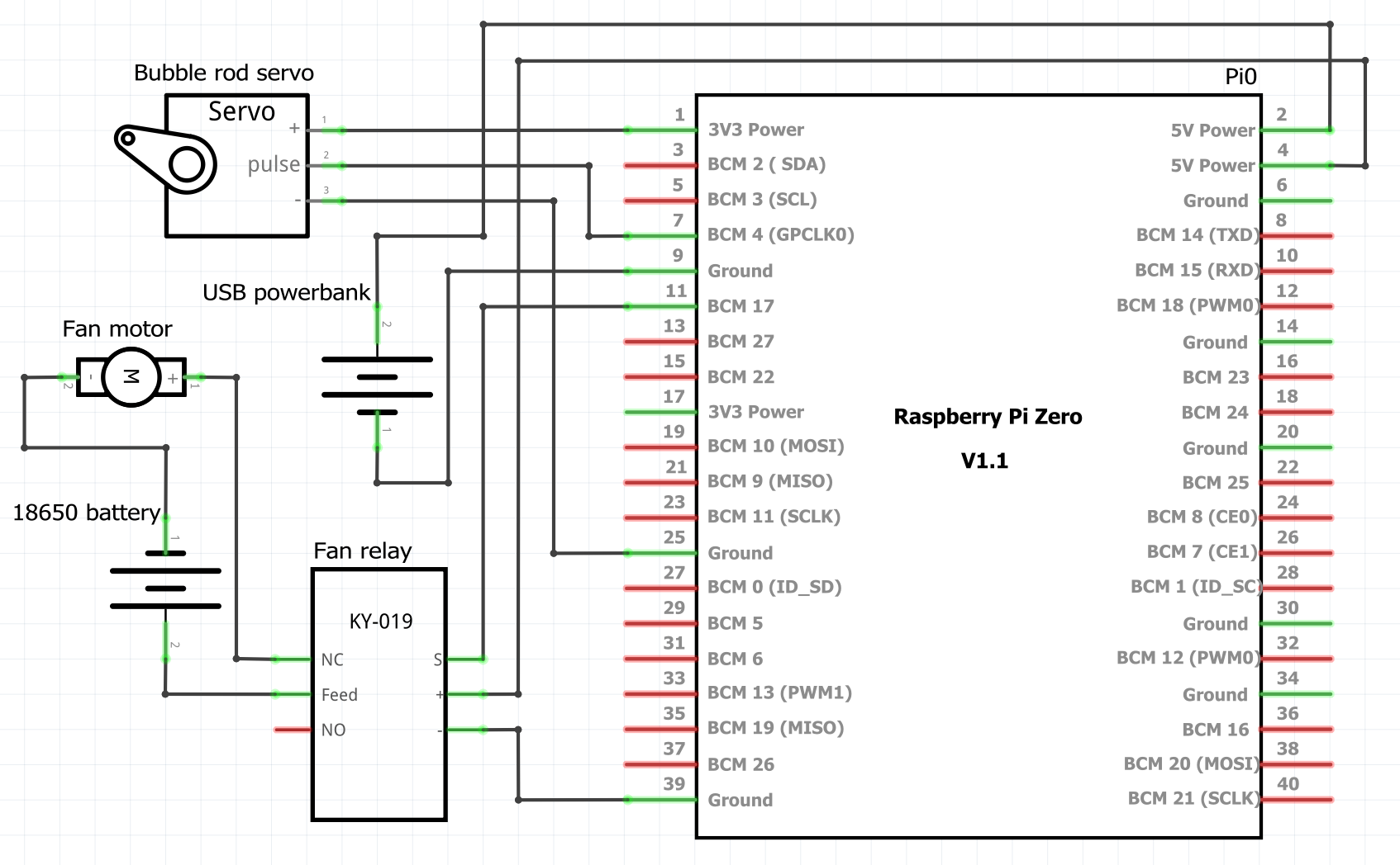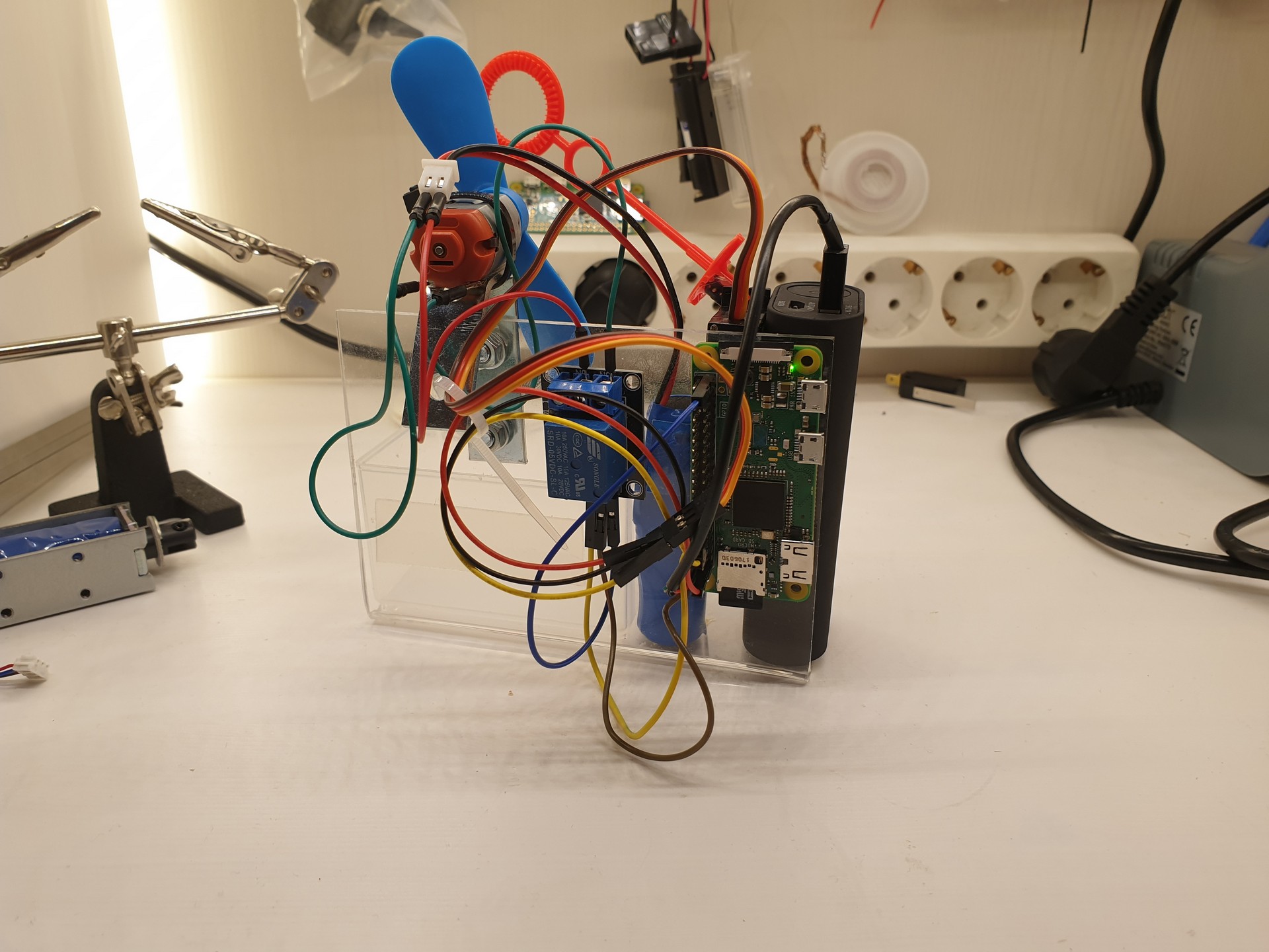 Denne ble laget mest siden jeg allerede hadde delene liggende, jeg hadde også lyst til å lage noe sønnen min kunne ha glede av. Grunnen til at jeg brukte en Raspberry pi zero er kun siden jeg har en del av de liggende. To grunner til at det ikke er bra å bruke en Raspberry, mengden strøm den bruker og å måtte koble seg til den med ssh for å starte opp programmet. Sistnevnte kan løses relativt lett men strømmen er det værre med.