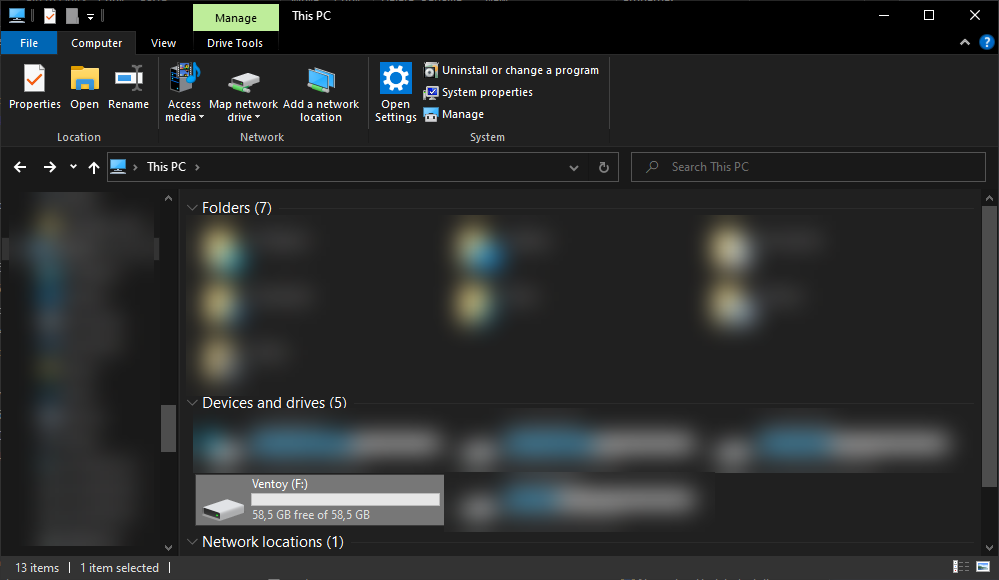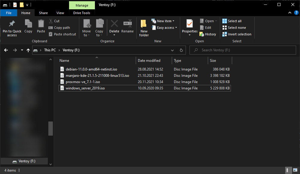 - After installation you will have a drive named Ventoy which you can start filling up with ISO files.
