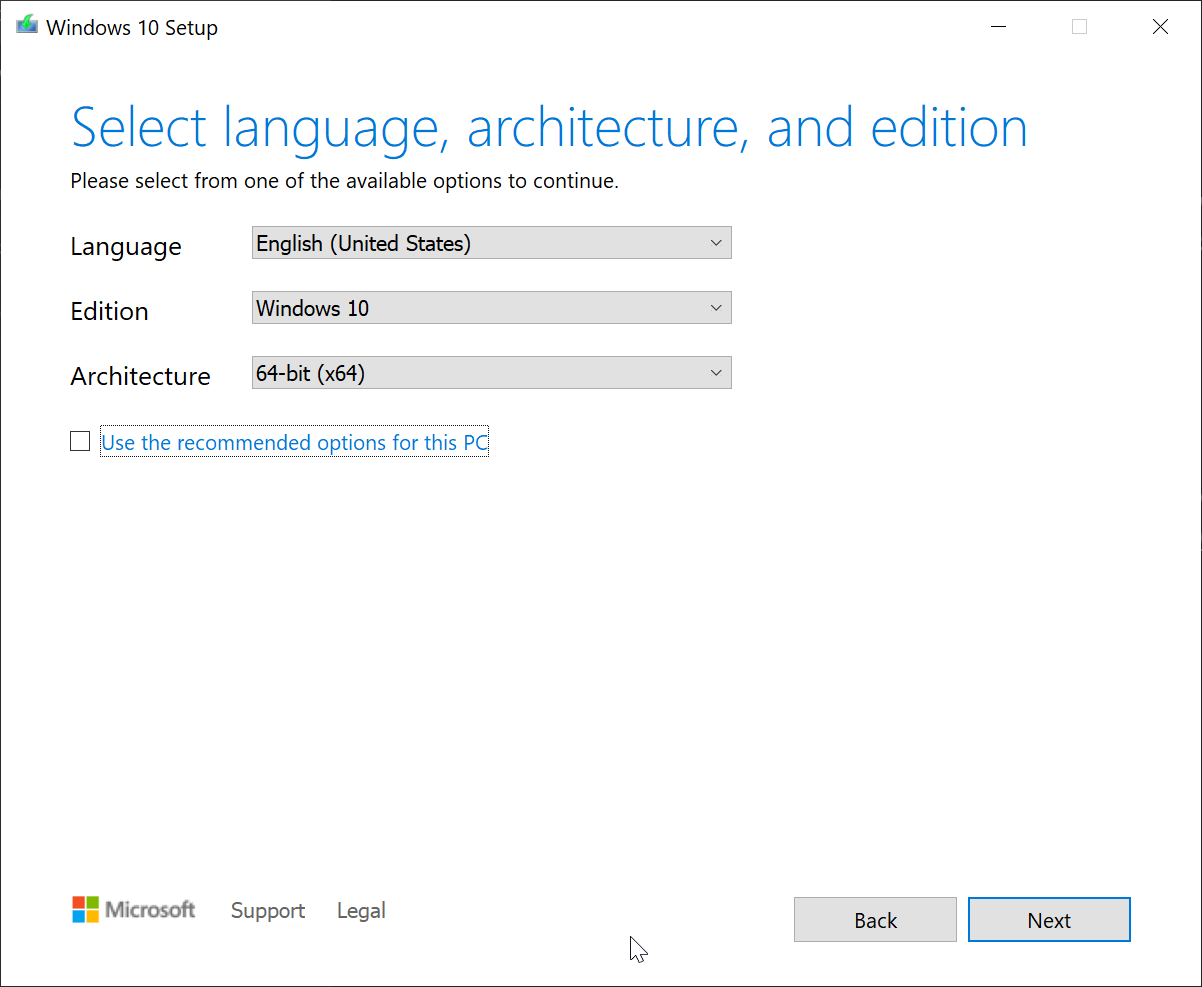 - Choose language, Edition and Architecture before going on.