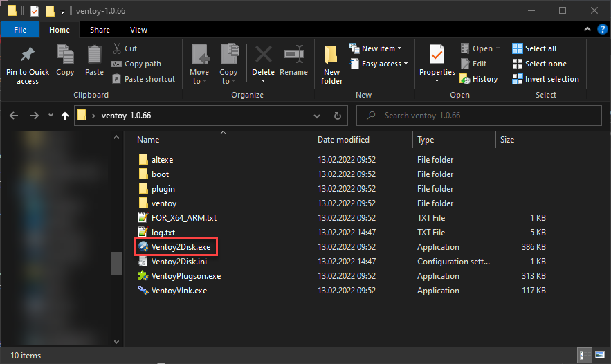 After downloading and extracting the folder, open the folder and run Ventoy2Disk.exe