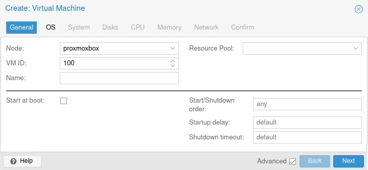 - Node selection comes into play if you setup multiple Proxmox instances in a cluster.