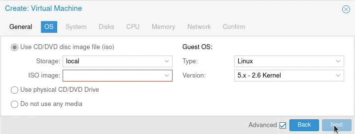 - Storage Is where the ISO you wish to use is located. This is usually "local"