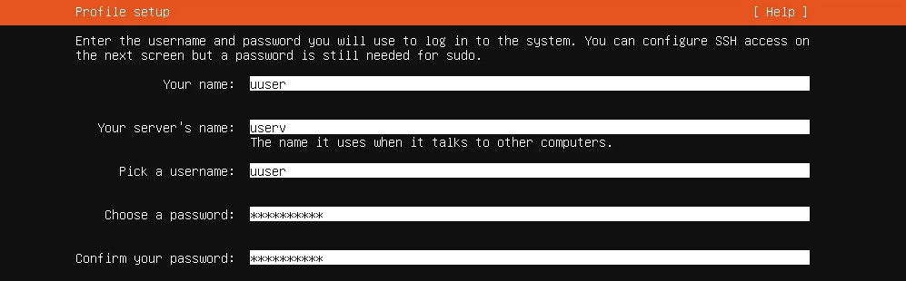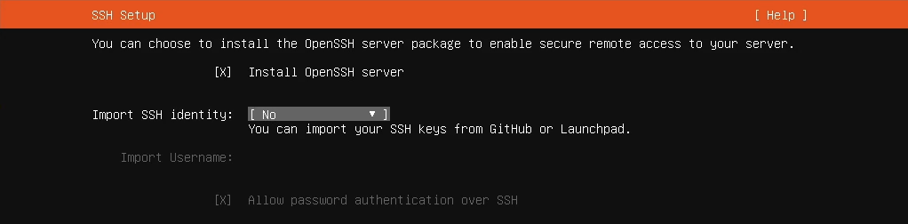 - SSH setup tick off on Install OpenSSH server so you can connect to it from another machine when the installation is done.